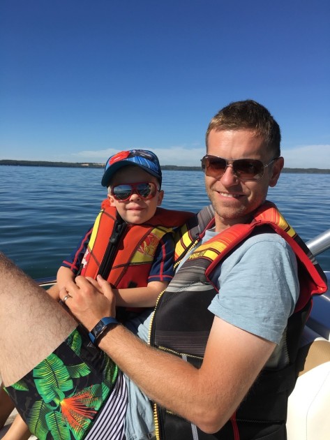We had George in 2014, he was only one when Tom was diagnosed with cancer. After he was diagnosed, we made the decision to start telling George that daddy had a poorly tummy. We always told George the truth but ‘fluffed’ the edges. We used the correct terminology in the hope that when he gets older it helps him process it. We explained that daddy had cancer which meant his tummy didn’t work.