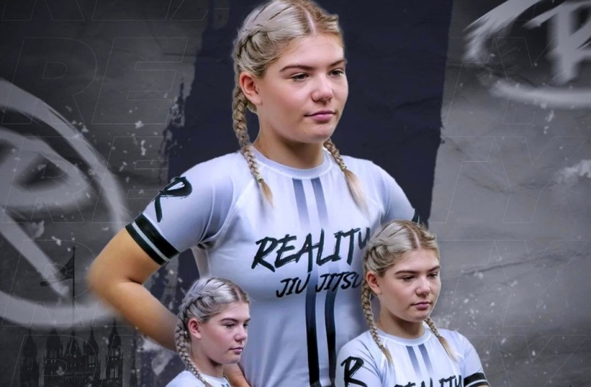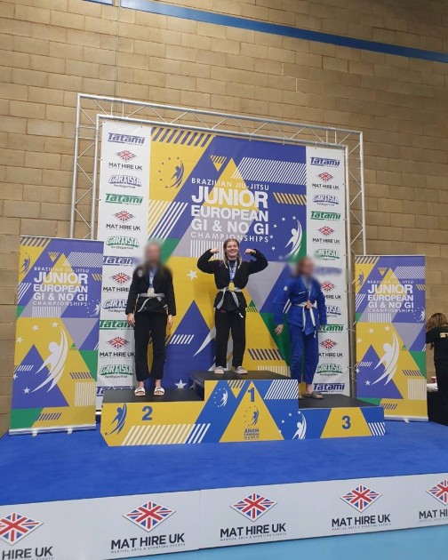 Poppy winning gold at the European junior BJJ championship