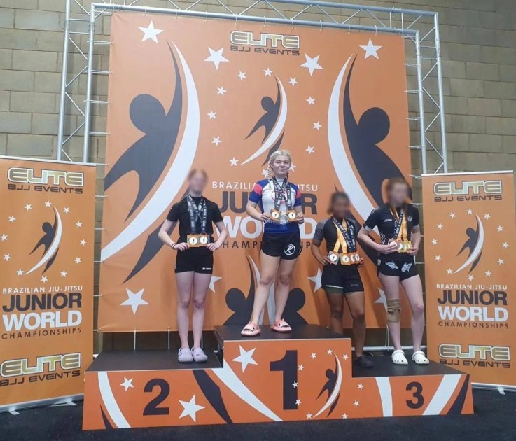 Poppy winning her second gold medal at the junior BJJ world championship