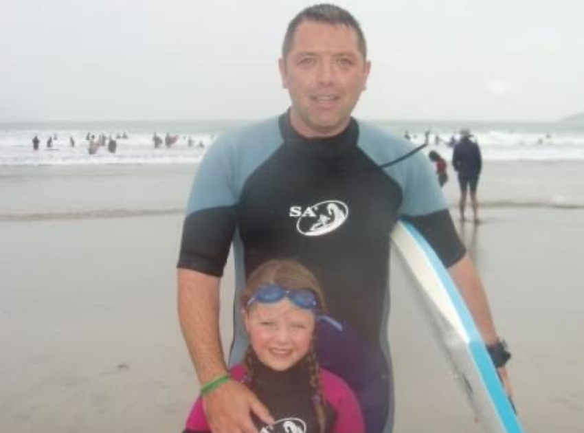 Some of my favourite memories of my dad are from when we lived in Wales, we lived close to the beach, so on hot days we would go bodyboarding together. My dad used to put me on the board and as a big wave came he would push me so I could catch the wave. I fell off the board almost every time, I was a strong swimmer but he'd still pick me up with salt water in my mouth and eyes to save me. We'd swim a lot together and I used to ride on his back like a mermaid. When my dad knew he was dying he wrote small letters to both me and my brother, on one of the letters he wrote that 'he was most proud of me when I was swimming, and that I should keep doing it' the year after he died, I won 6 trophies, and won club championships. Later in life I became a qualified swim teacher. I know that I kept my love for the sport because I had his support from day one.”