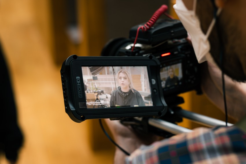 Beth behind the camera at Sky HQ
