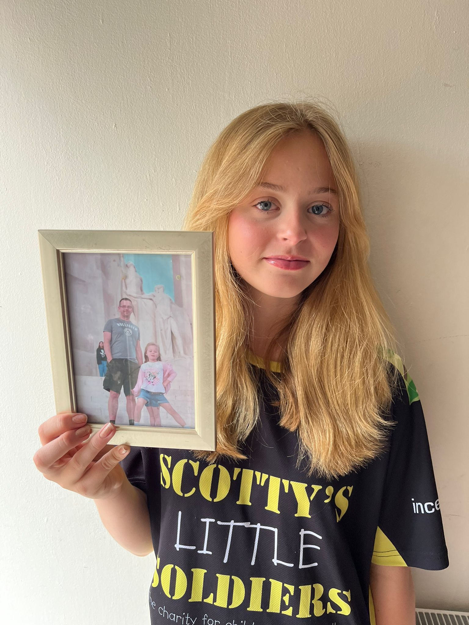 13-year-old Emily is the youngest of 10 Scotty’s Little Soldiers’ Council Members who are taking on Scotty’s March in memory of their military parent while raising funds for Scotty’s Little Soldiers. Emily’s dad was Sergeant Antony Reynolds and served in the Royal Electrical and Mechanical Engineers (REME). He served in the Army for 21 years completing multiple tours in Afghanistan, and others in Bosnia, Kosovo and Northern Ireland. He died by suicide in 2018 when Emily was aged 7.