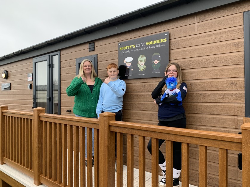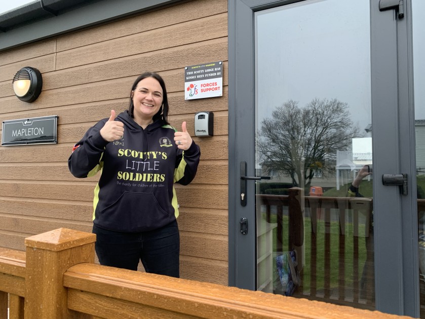 Thirteen years later, On Wednesday 29th March 2023, Nikki travelled down to Devon Cliffs to open our seventh Scotty lodge for bereaved military families.