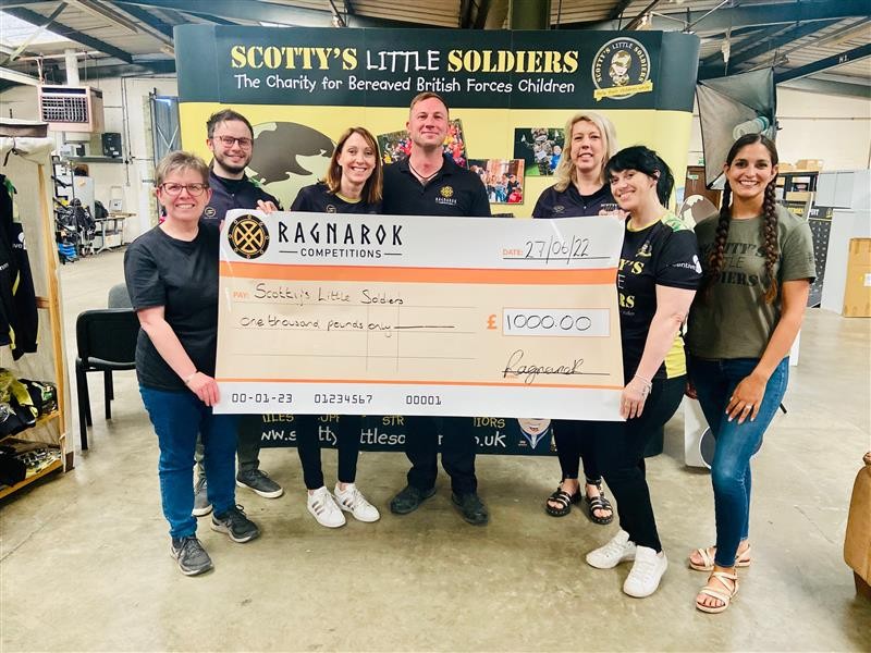Scotty's being presented a cheque from Ragnarok Competitions