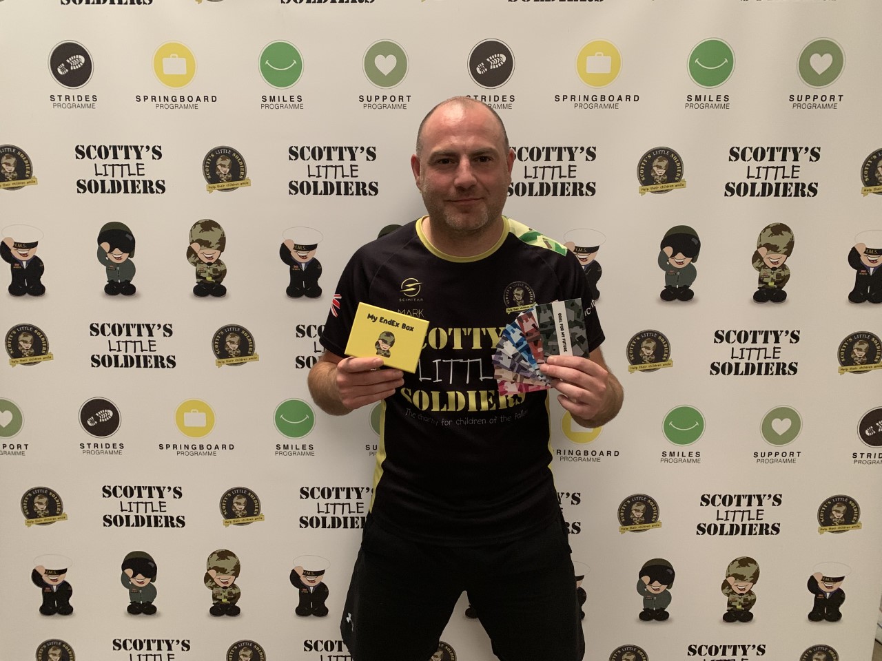 Scotty's Child and Young Person Support Worker, Mark, holding the EndEx box