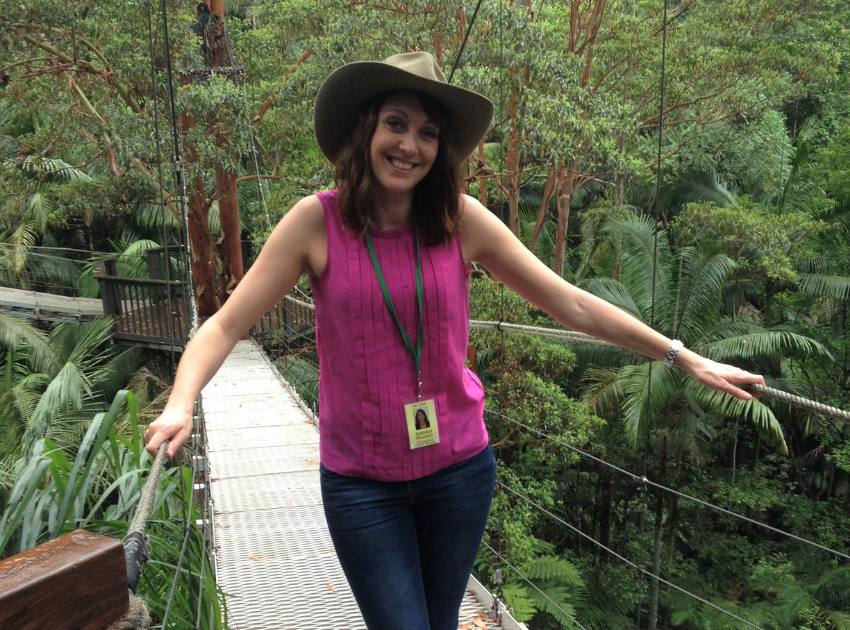Sarah on the famous I'm a Celebrity bridge in Australia in 2014