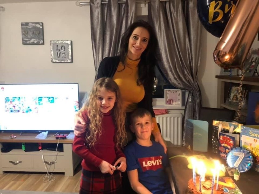 Sarah and the kids celebrating Bradley's seventh birthday