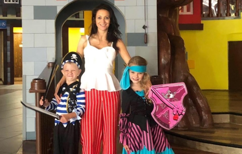 Sarah with Tori and Bradley dressed as pirates