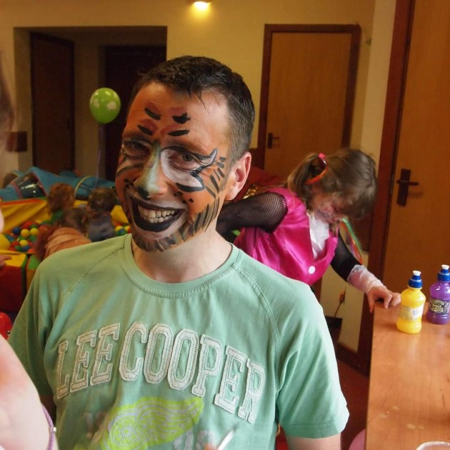 Gary in face paint at a birthday party