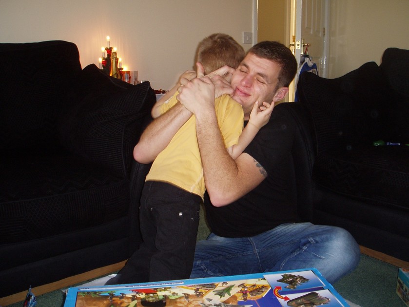 Lee hugging Kai, the Christmas before he died