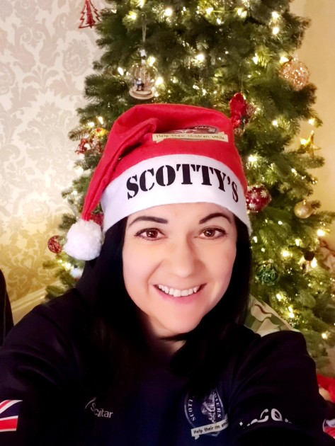 Nikki wearing her Scotty's Christmas hat