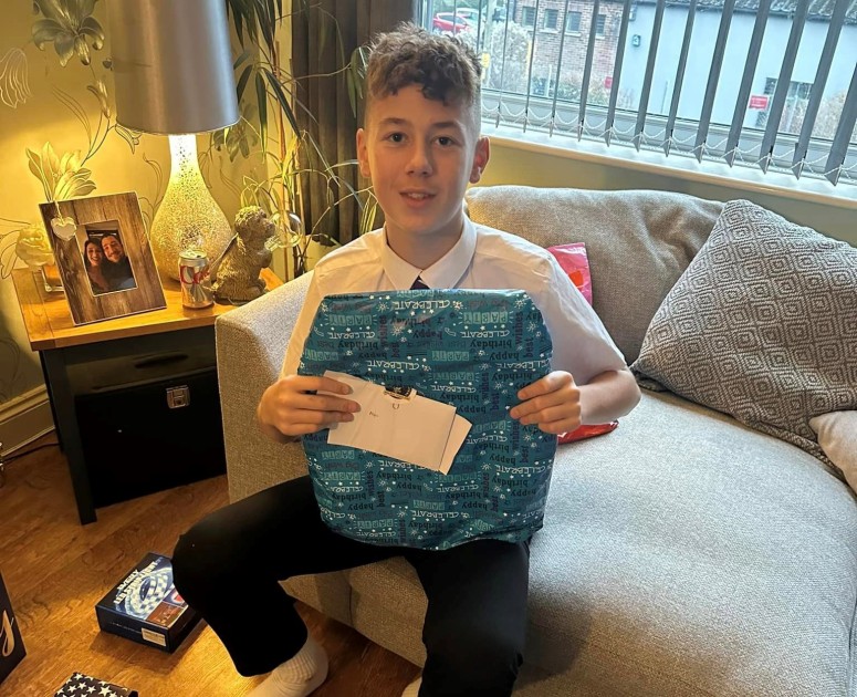 Alfie unwrapping his Scotty's birthday gift