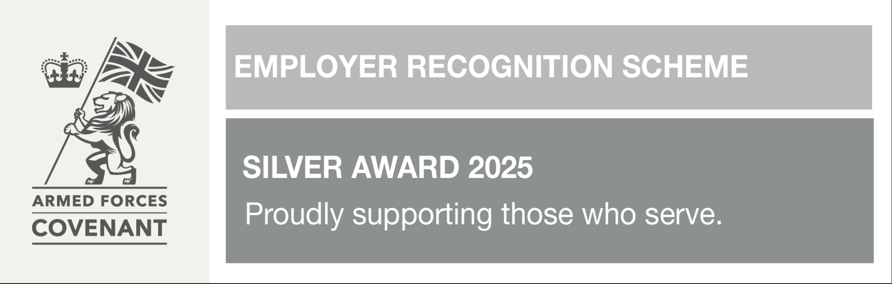 The Silver Award is given by the Ministry of Defence to employers who go above and beyond their Armed Forces Covenant commitments, embedding inclusive policies and visibly championing the value of those connected to Defence in the workplace.