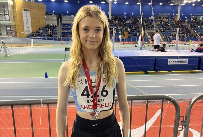 Sofia wearing her silver medal at the National Indoor Athletics Championship