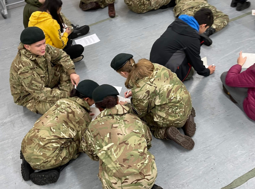 A group of Army Cadets writing letters to bereaved Forces children and young people