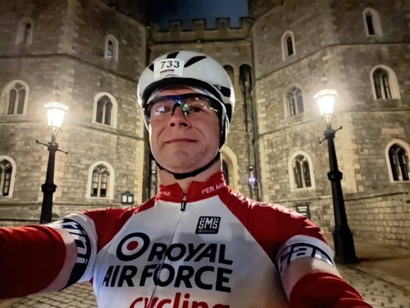 “The cycle route was quite simple. I live in Reading and there’s a flat loop to Windsor, and it seemed appropriate to stop for a photo outside Windsor Castle in my RAF cycling top. That was all great, then for the run I did repetitions of the park near my house. That’s when it got tricky. The mist came down and my chest torch kept bouncing back in my face, and the last 20 minutes or so was a real uphill battle. The reflected light made me very dizzy and I almost fell in the lake. I even came home half a kilometre early and had to go back out to finish it off. When I sat down at my laptop to say I’ve completed the May Marathon and asked people to sponsor me, the laptop screen looked like it was flashing!”